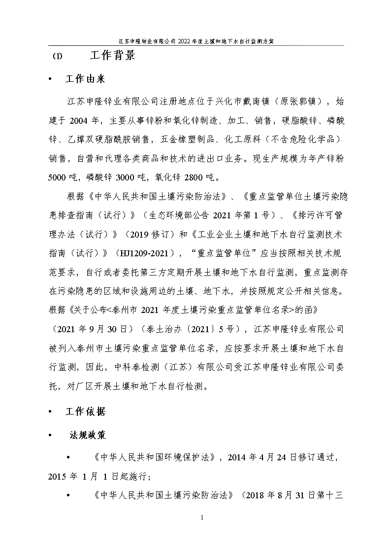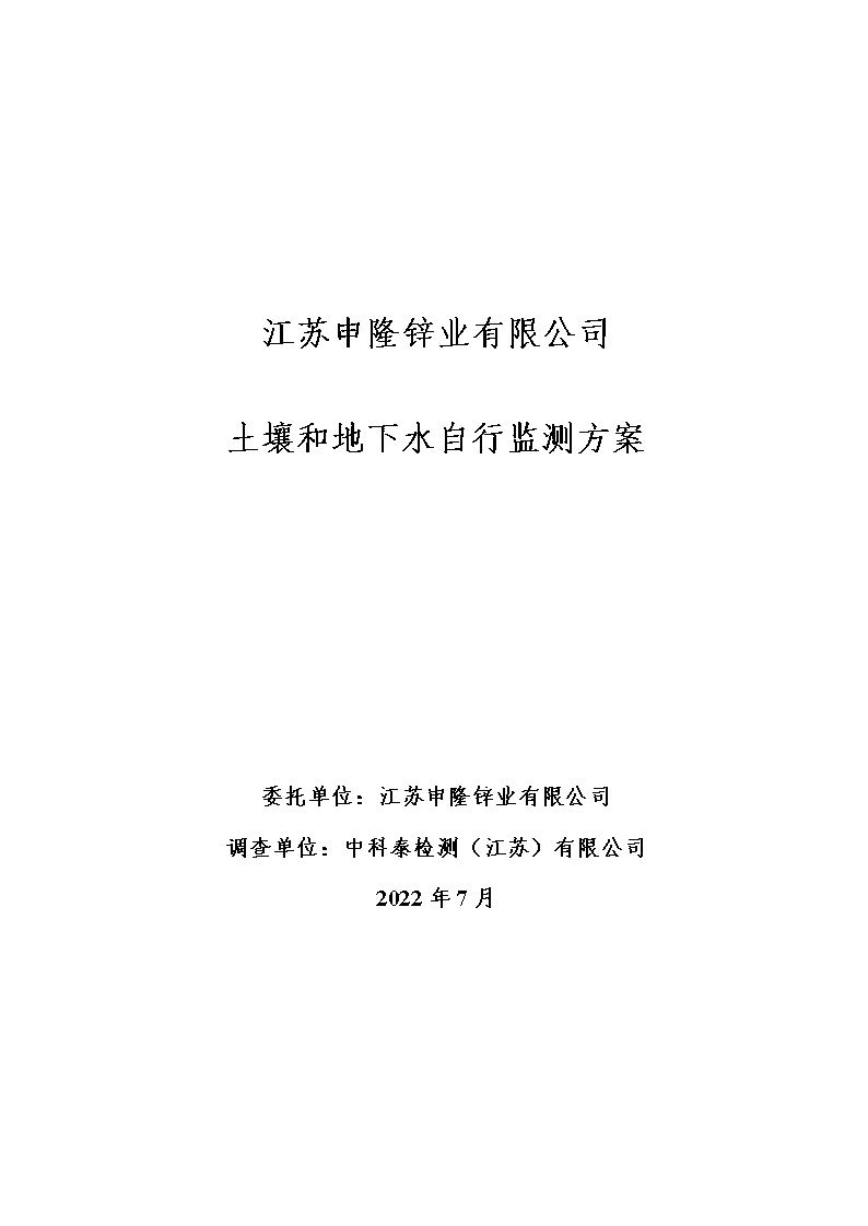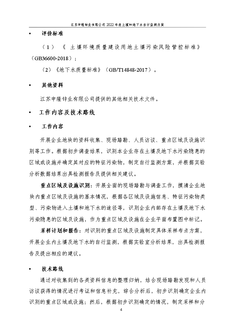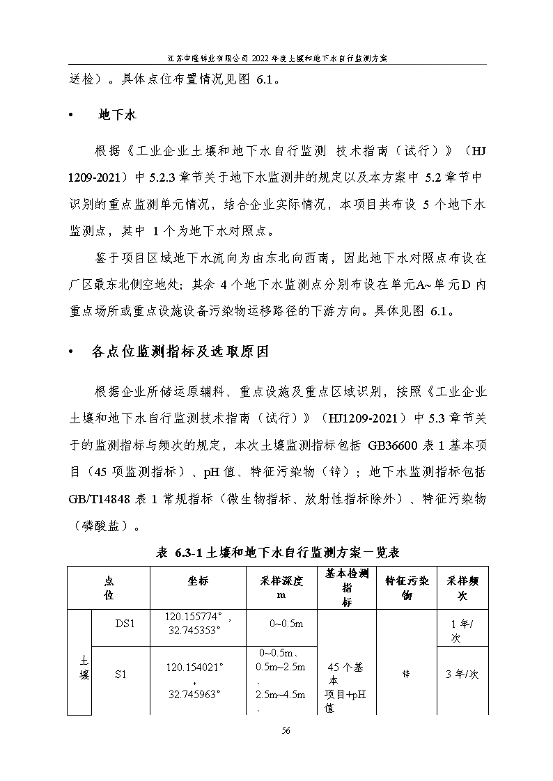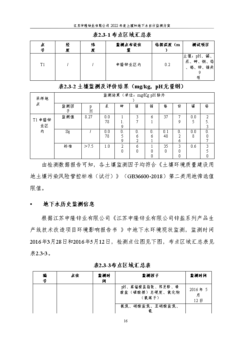 Self monitoring Plan for Land and Groundwater of Shenlong Zinc in 2022