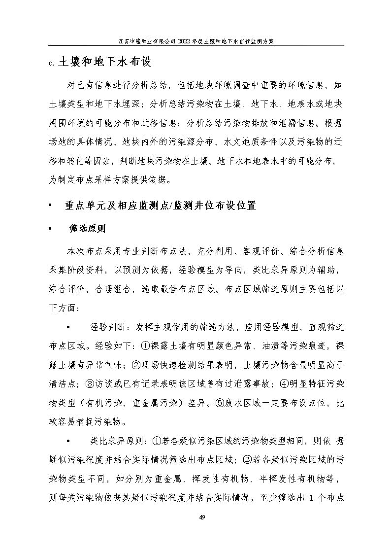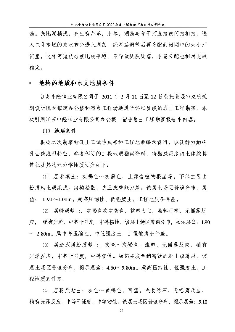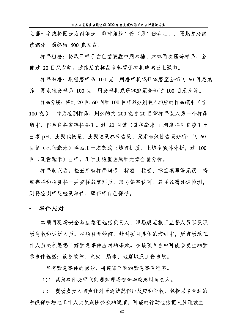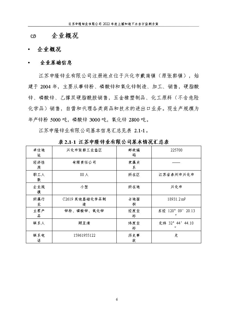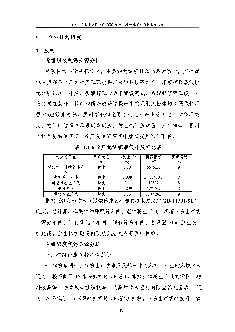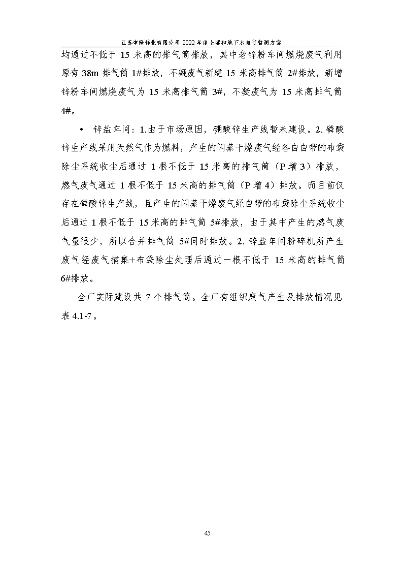 Self monitoring Plan for Land and Groundwater of Shenlong Zinc in 2022